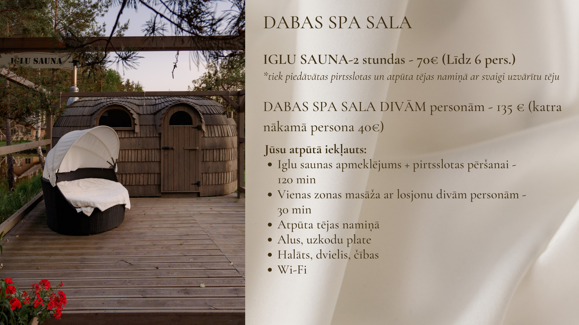 DABAS SPA SALA DIVĀM personām - 135 € (katra nākamā persona 40€)